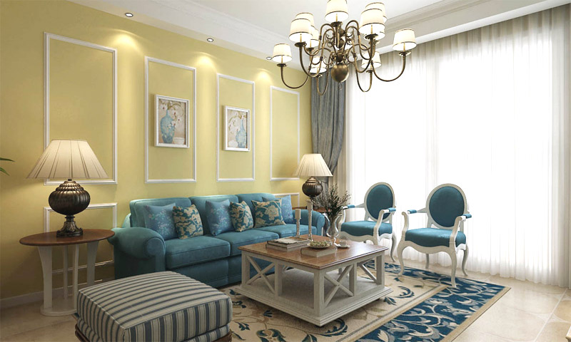 歐式風格三居藍色海岸